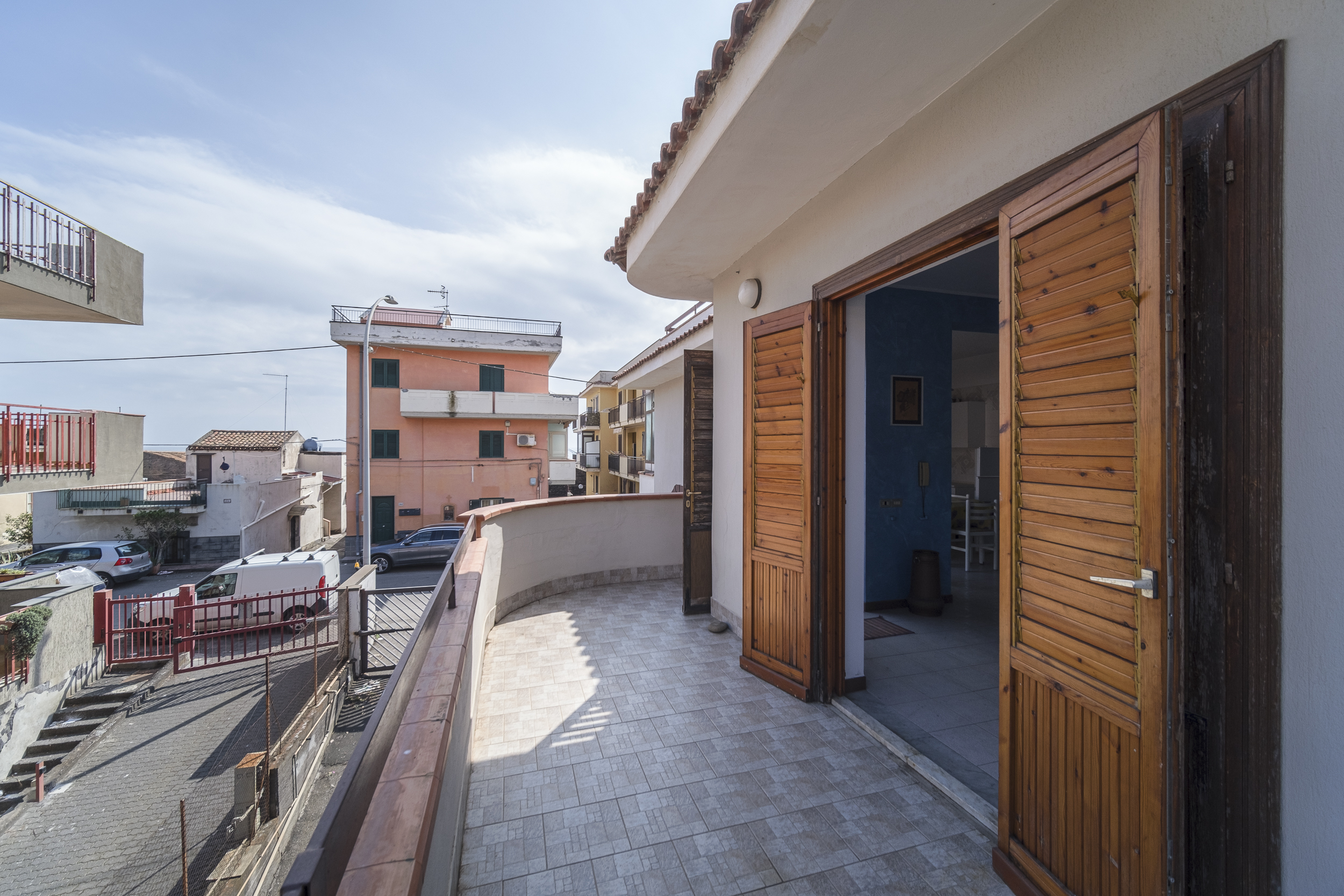 Mascali Via Spiaggia, a pochi metri dal mare proponiamo in vendita appartamento posto al primo piano, 100 mq, composto da ingresso su ampio soggiorno, cucina abitabile, due camere da letto matrimoniali, bagno, ampio balcone angolare e terrazzo soprastante di circa 100 mq. Completa la vendita un posto auto di proprietà di circa 11 mq. L’appartamento si trova in buone condizioni di manutenzione, luminoso in quanto dotato di aperture in tutte le stanze, e panoramico, con vista sull’Etna e sul porto di Riposto.