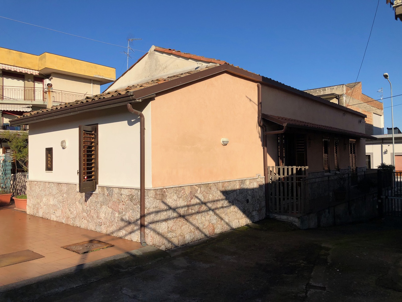 Fiumefreddo Di Sicilia via Marconi, proponiamo in vendita esclusiva, indipendente villetta di 150 mq, cosi composta: ingresso a piano terra, ampio salone con camino, cucina, camera matrimoniale con bagno e spogliatoio, due camere da letto, secondo bagno, lavanderia, corte esterna di 72 mq, due posti auto coperti da tettoia di 32 mq, terreno di 273 metri, completa la vendita un deposito posto al piano seminterrato di circa 48 mq. Ottime condizioni, riscaldamento autonomo.